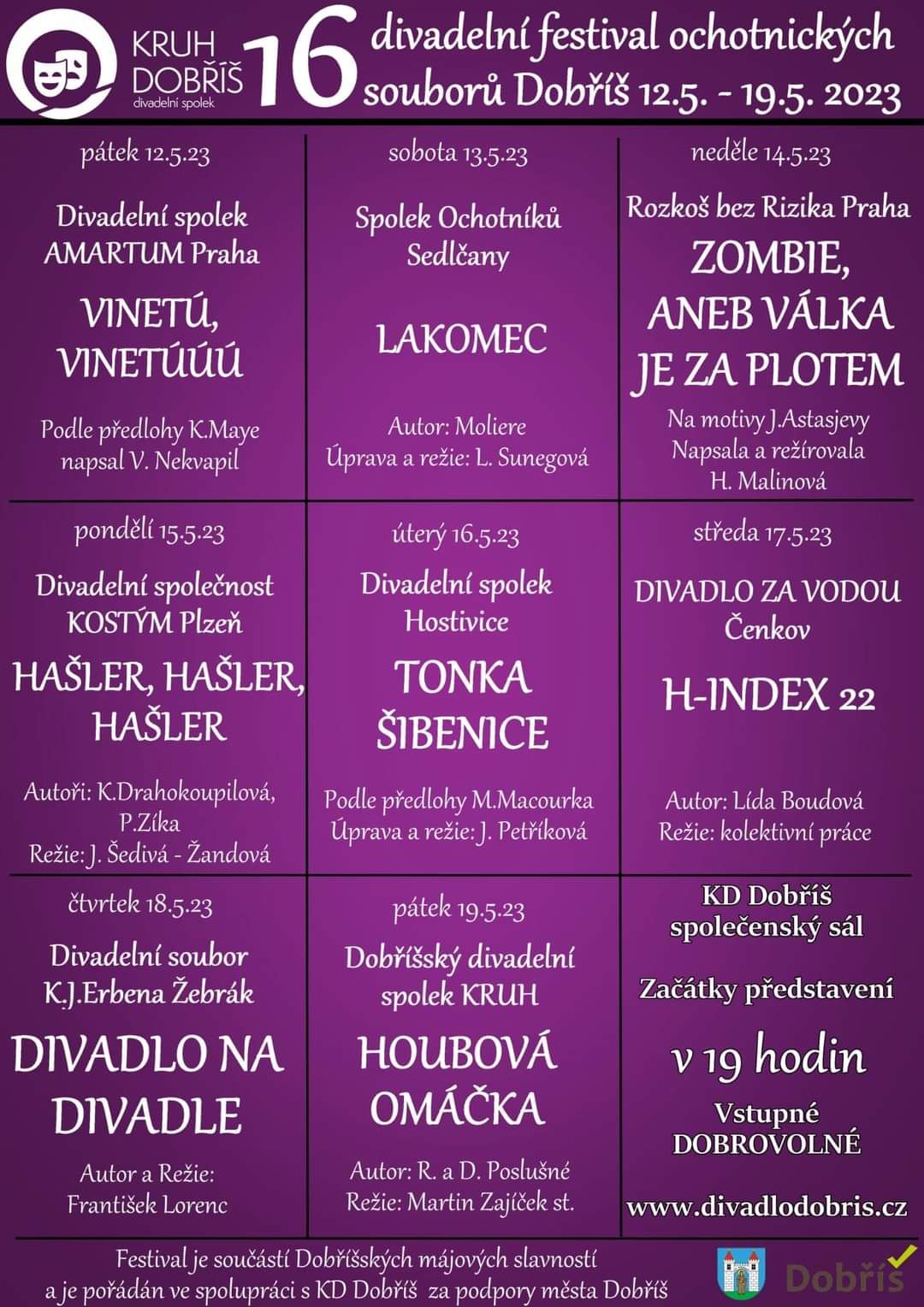 Od 12. do 19. května proběhne již 16. ročník úspěšného divadelního festivalu ochotnických souborů Dobříš.