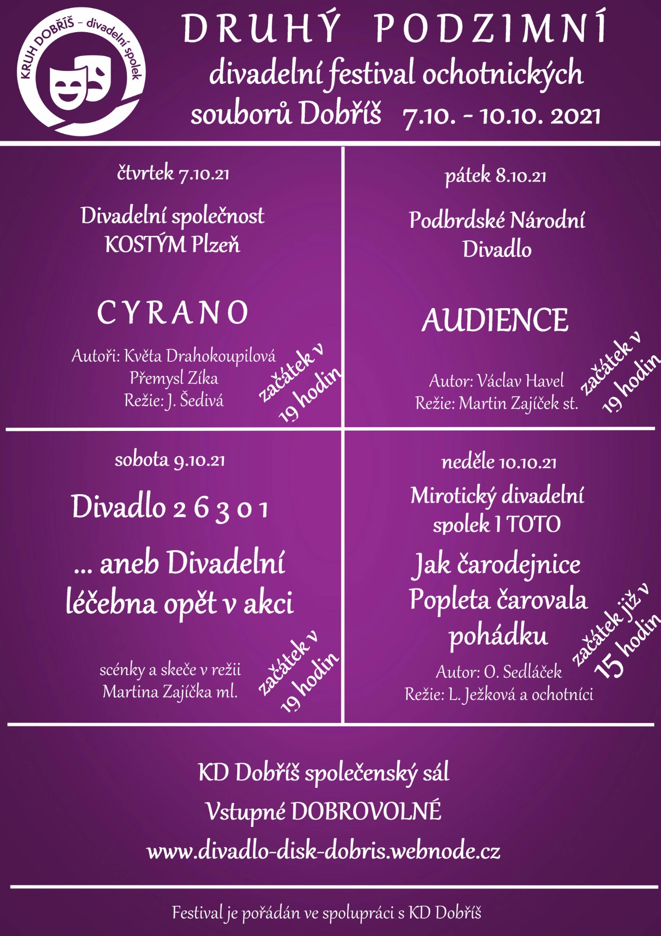... podruhé ... podruhé pro vás připravujeme druhý ročník podzimního minifestivalu ... tentokrát nám to snad aktuální opatření nepřekazí ... těšíme se na vás ...