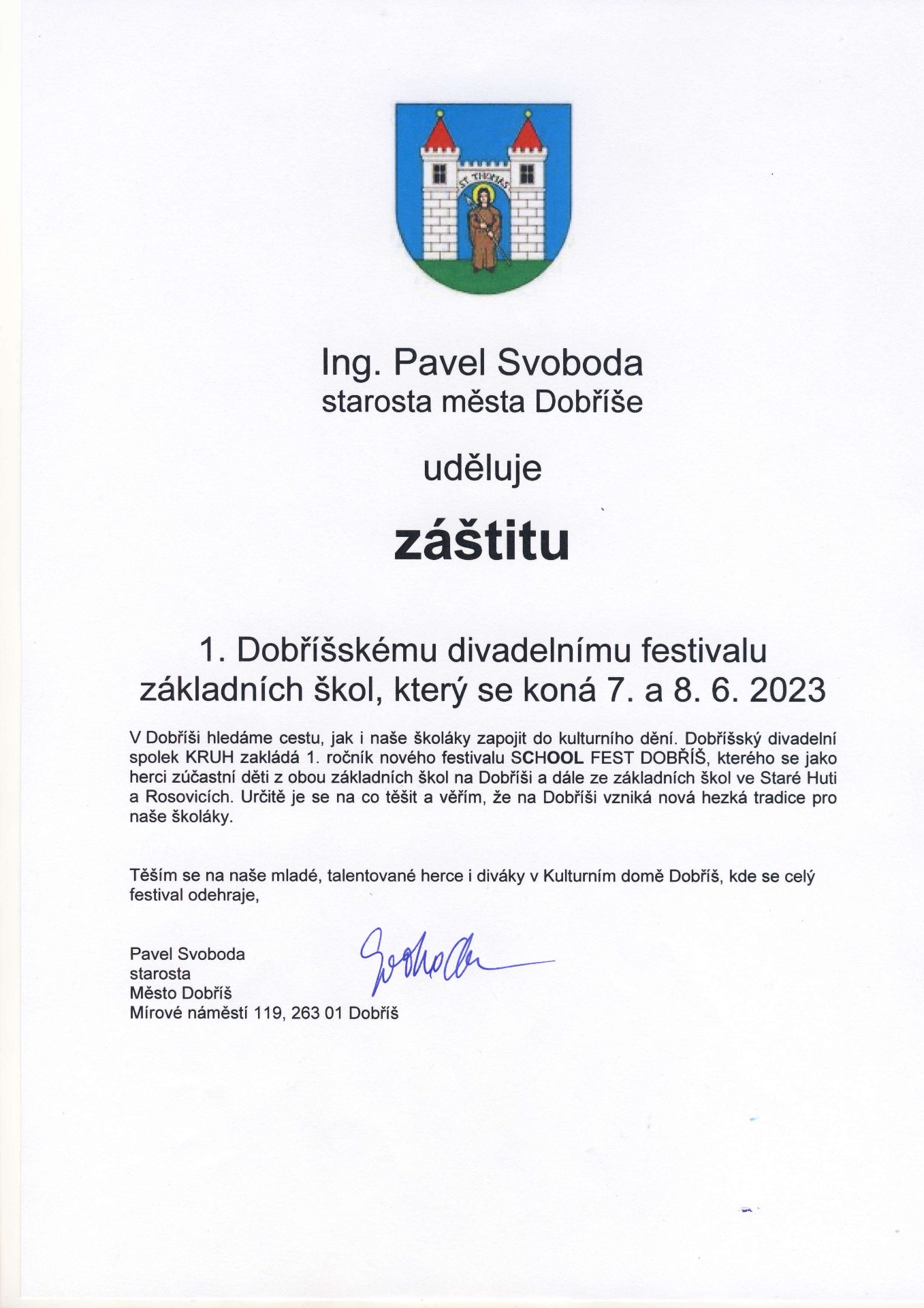 který bude i členem poroty 1. ročníku divadelního festivalu základních škol SCHOOL FEST DOBŘÍŠ.