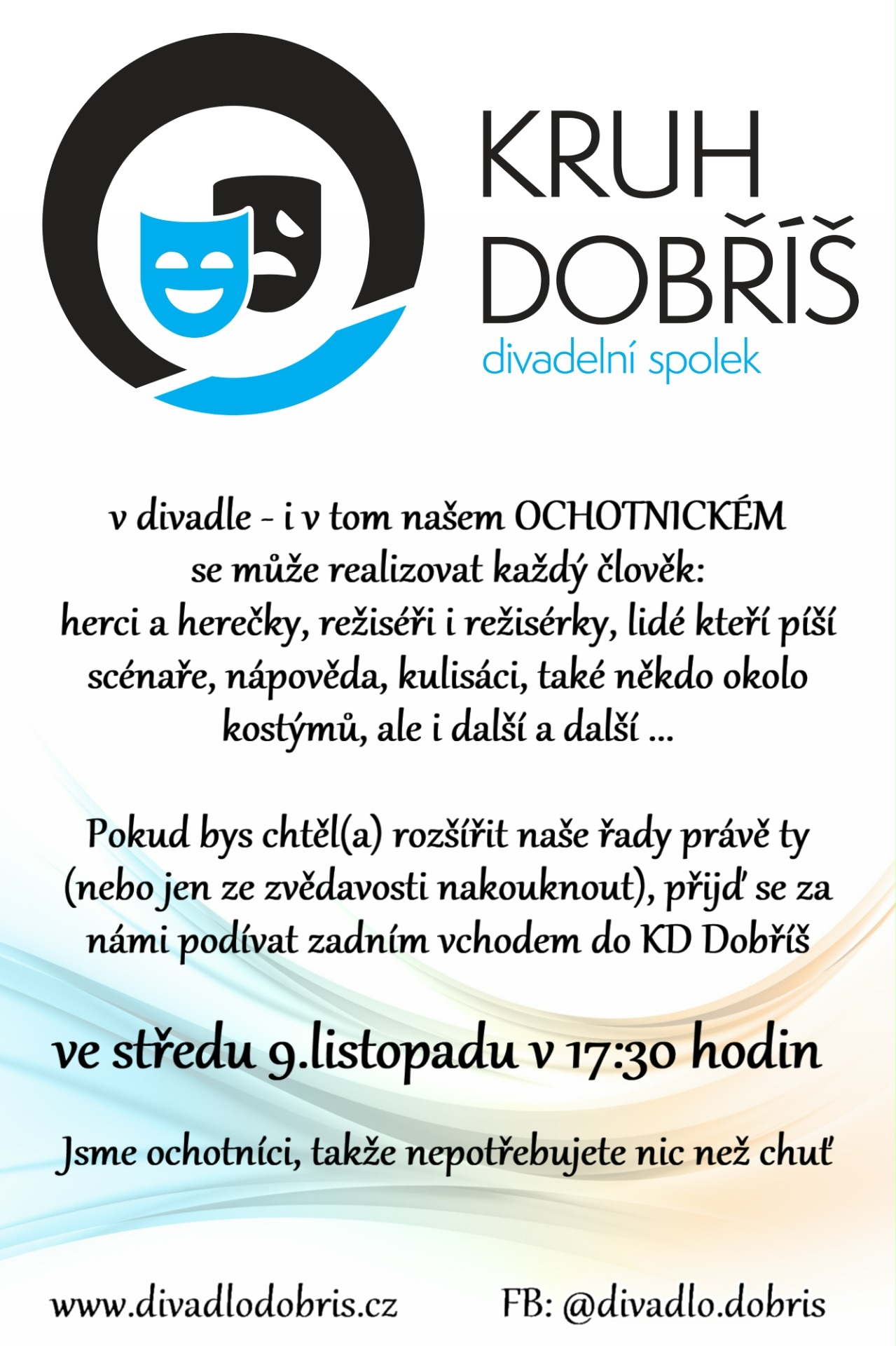 Pokud bys chtěl(a) rozšířit naše řady právě ty (nebo jen ze zvědavosti nakouknout), přijď se za námi podívat zadním vchodem do KD Dobříš